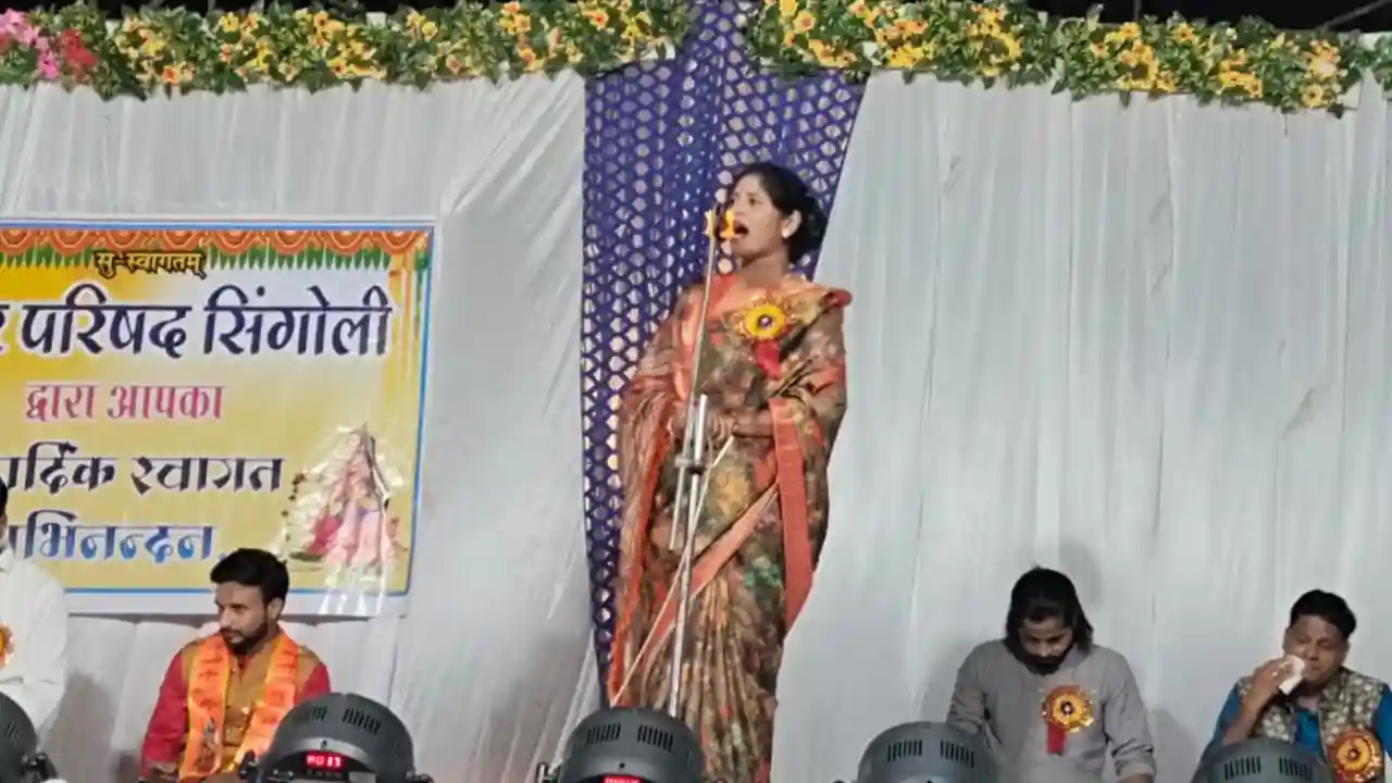 सिंगोली,,,नगर परिषद द्वारा आयोजित 13 दिवसीय दशहरा मेले में आयोजित कवि सम्मेलन में आए कवियों ने अपने शब्दों से जनता को बांध कर रखा और खूब तालिया बटोरी,,रात्रि 10 बजे से शुरू हुआ कवि सम्मेलन जिसमें उज्जैन से आई कवियित्री निशा पंडित द्वार सरस्वती वंदना से कार्यकम की शुरुवात हुई और शाहपुरा से दिनेश बंटी शाहपुरा (हास्य) ने प्रथम कवि के रूप में बेटिंग करी और नगर के कवि गिरिराज गंभीर ने गो माता पर कविता सुनाई ’दोनों हाथ काट दो हत्यारों के जो गो माता को काटकर अपना व्यापार चलाते हे’ जनता ने तालिया बजाकर उनका अभिवादन किया ,,जैसे जैसे कार्यक्रम आगे बढ़ता गया मंदसौर से आए मुन्ना बैटरी ने हास्य व्यंग पर एक से बढ़कर एक व्यंग्यबाण चलाए ,,निशा पंडित द्वारा गजल और श्रृंगार पर अपने भाव रखे वही उज्जैन से लाफ्टर कवि हिमांशु बवंडर ने जनता का खूब मनोरंजन किया और इटावा यूपी से आए वीर रस के कवि राम भदावर ने वर्तमान में घटना क्रम पर राजनीति के साथ महिलाओं की सुरक्षा और वीरता पर अपनी बात रखी ’ विश्व सुंदरी वह होती हे जो अग्नि में जलकर बलिदान होती हे लेकिन अपने नाखून दिखाना तक पसन्द नहीं करती हे’कार्यक्रम का संचालन पंडित अशोक नागर शाजापुर ने किया है कार्यक्रम से पूर्व मंचासीन अतिथियों का स्वागत नगर परिषद सीएमओ एवं मेला कमिटी अध्यक्ष द्वारा सम्मान किया गया हे